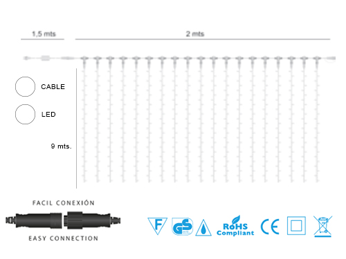 Alquiler de cortinas luminosas para fiestas y celebraciones navideñas, 9 metros de caída con brillantes luces blancas para adornar exteriores de fachadas, paredes de centros comerciales, plazas, etc.