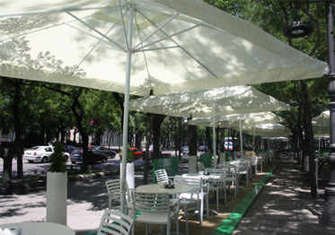 Alquiler de bases cuadradas de granito, duraderas y resistentes, perfectas para sujetar sombrillas y poder diseñar espacios con sombra en todo tipo de eventos corporativos o celebraciones privadas.
